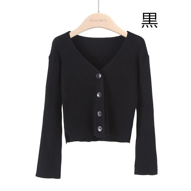 ショートVネック長袖カーディガン きれいめ 秋冬新作 ニット羽織り