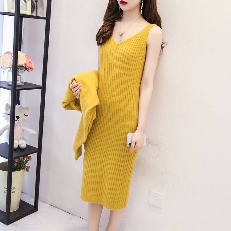 セーター×ニットワンピース ニットセットアップ キャミソールワンピース 長袖プルオーバー