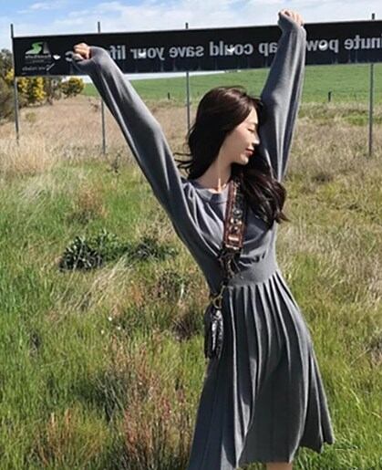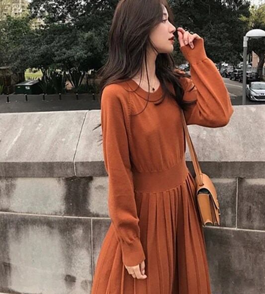 ワンピース セーター ピンク 黒 ニットワンピース プリーツ aラインワンピース