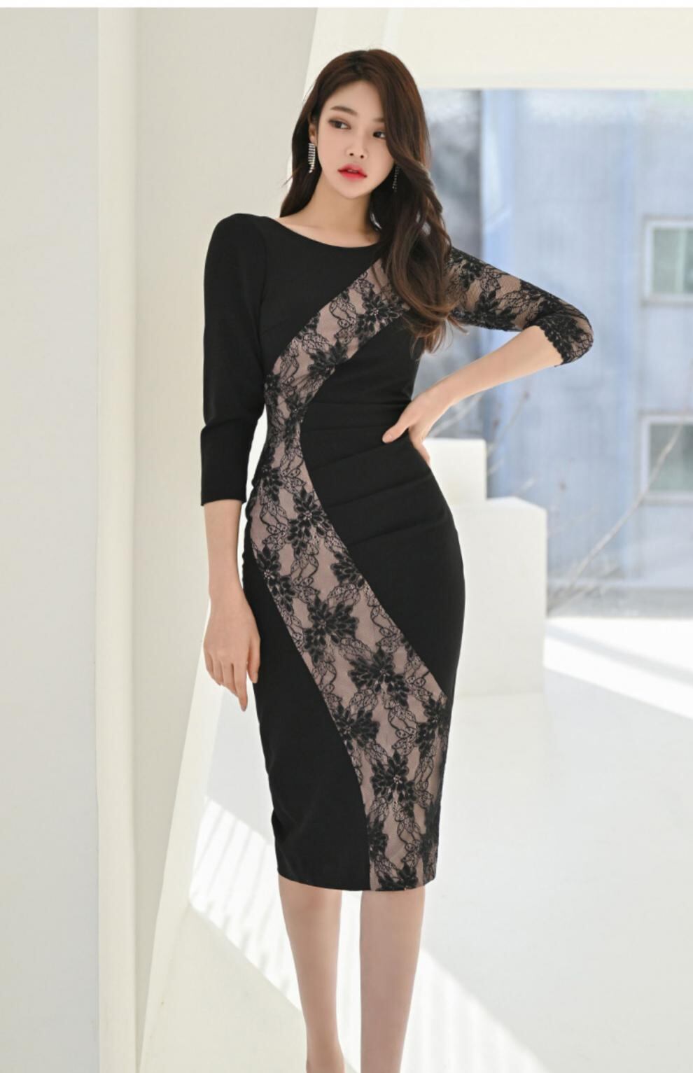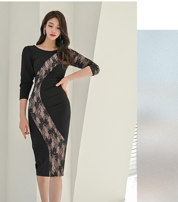 ドレス チュールワンピース ワンピース フォーマル 膝丈 レースワンピ 韓国ファション 長袖 大人 通勤
