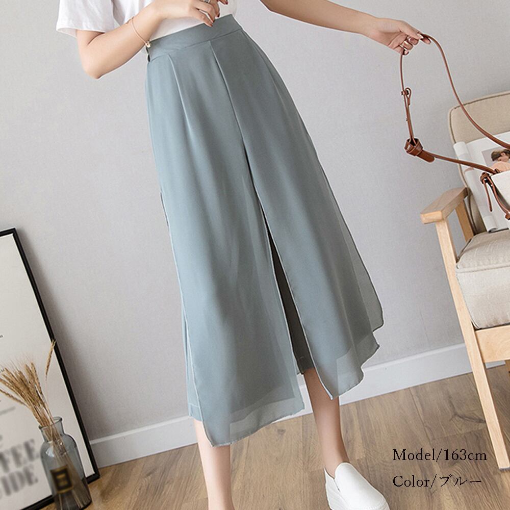 ワイドパンツ レディース スカーチョ ゆったり きれいめ シフォン 無地