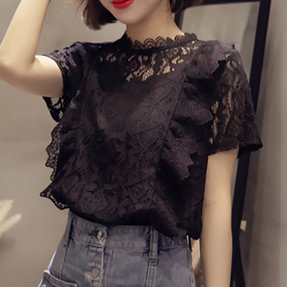 総レース ブラウス フリル シースルー