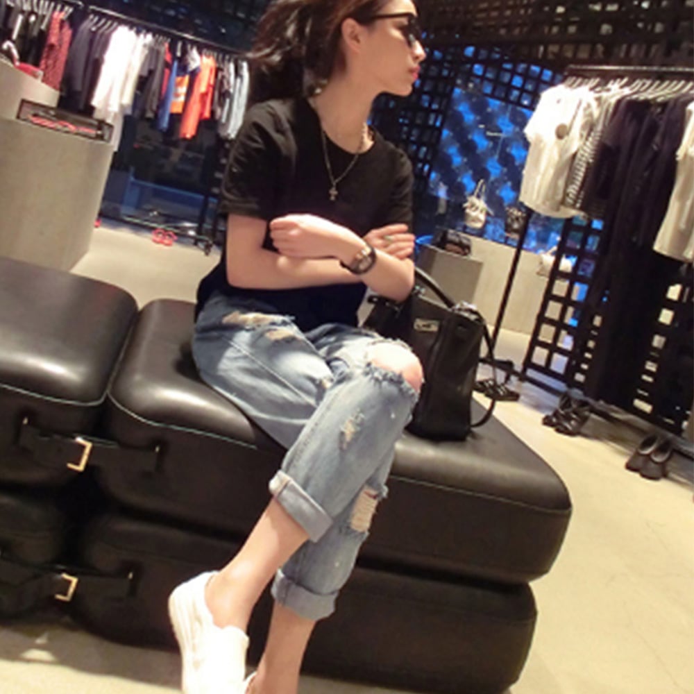 穴開きジーンズ ロールアップ ゆったり クラッシュパンツ 美脚 着やせ 体型カバー ストリートジーパン レディース カッコイイボトムス 大人カジュアル新作 ウォッシュジーパン