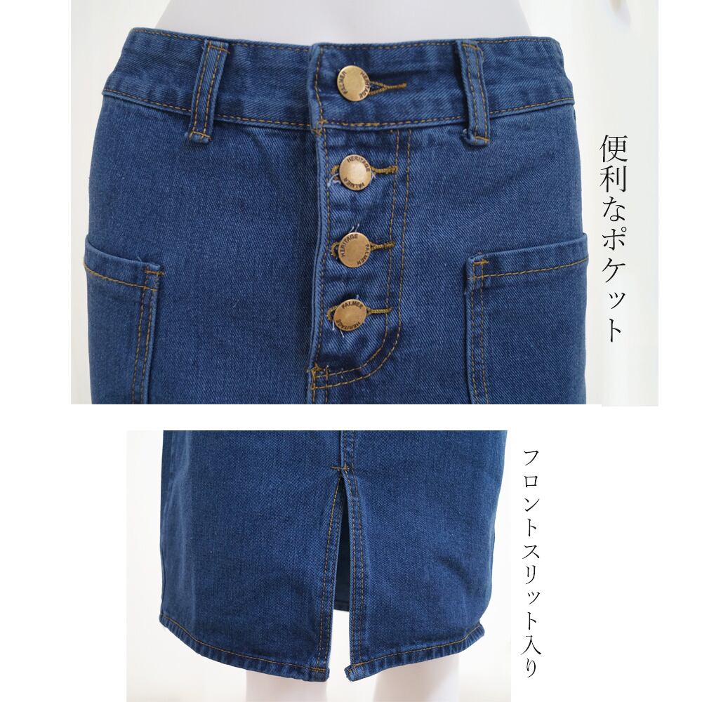 デニムスカート スリット 膝丈 タイトスカート フロントボタン 細見え