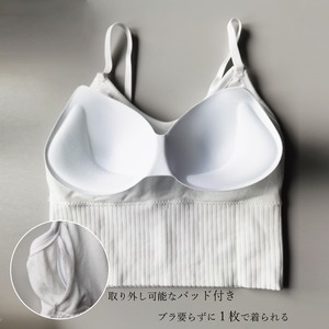 バストを優しく包み込むソフトカップ入り。取り外し可能なので、お手入れ簡単&コーデに合わせて使い分け出来る所も魅力