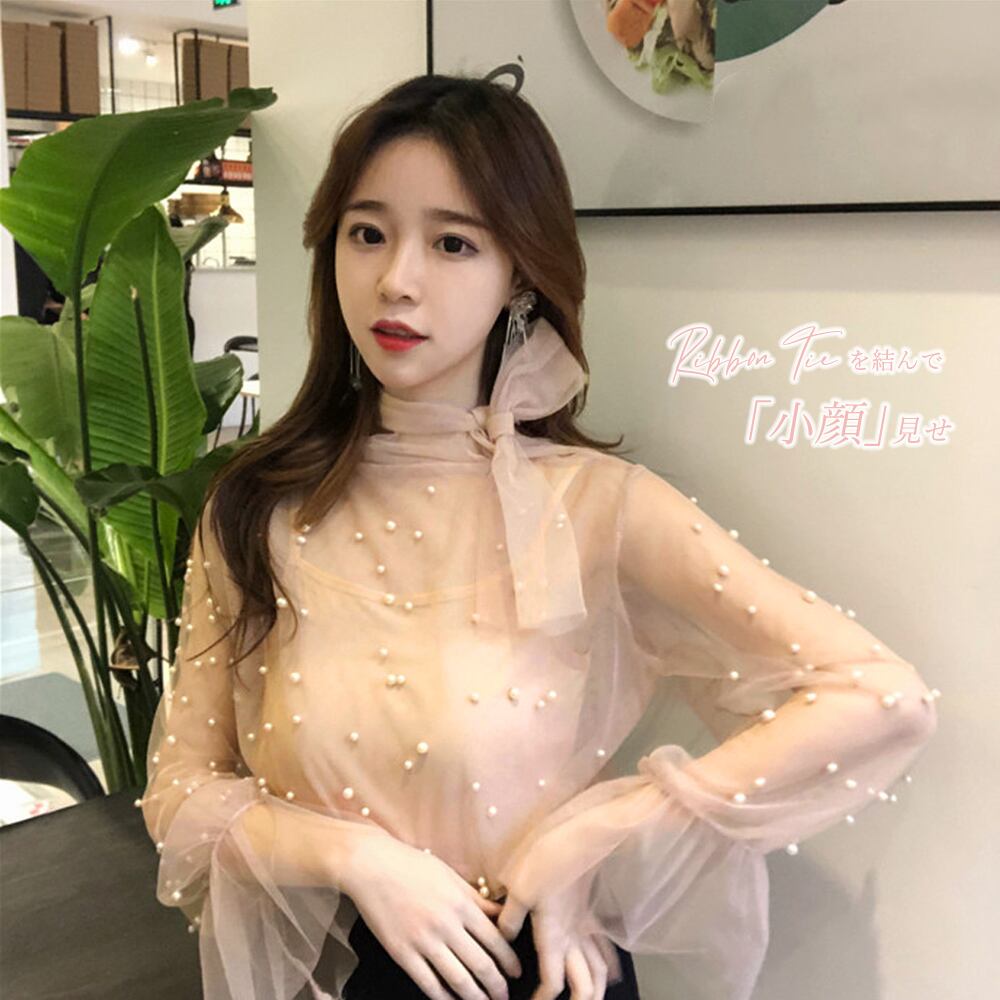 パール付きブラウス シースルートップス 重ね着 インナー