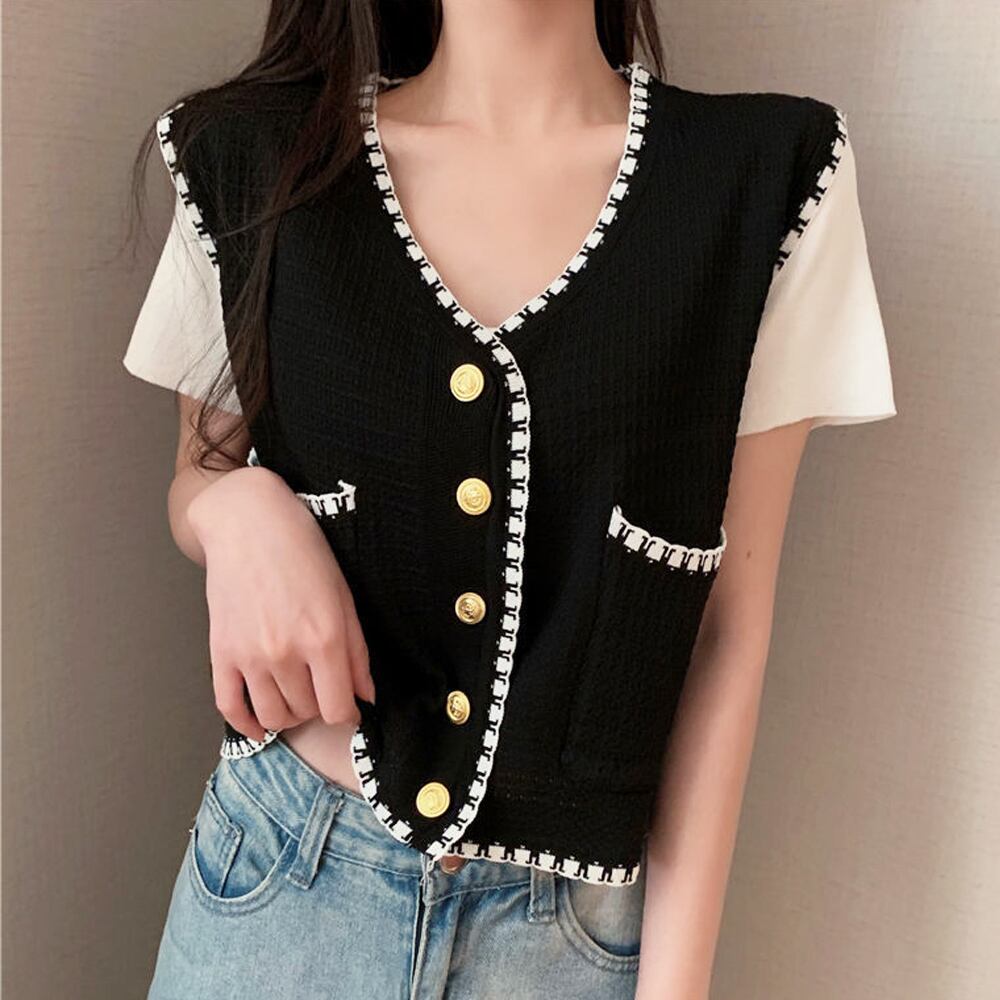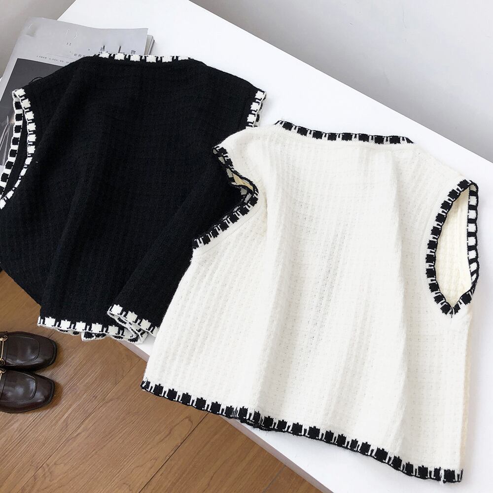ショート丈トップス 前開き ノースリーブ ボタン付き 重ね着 通勤 ベスト 学院風