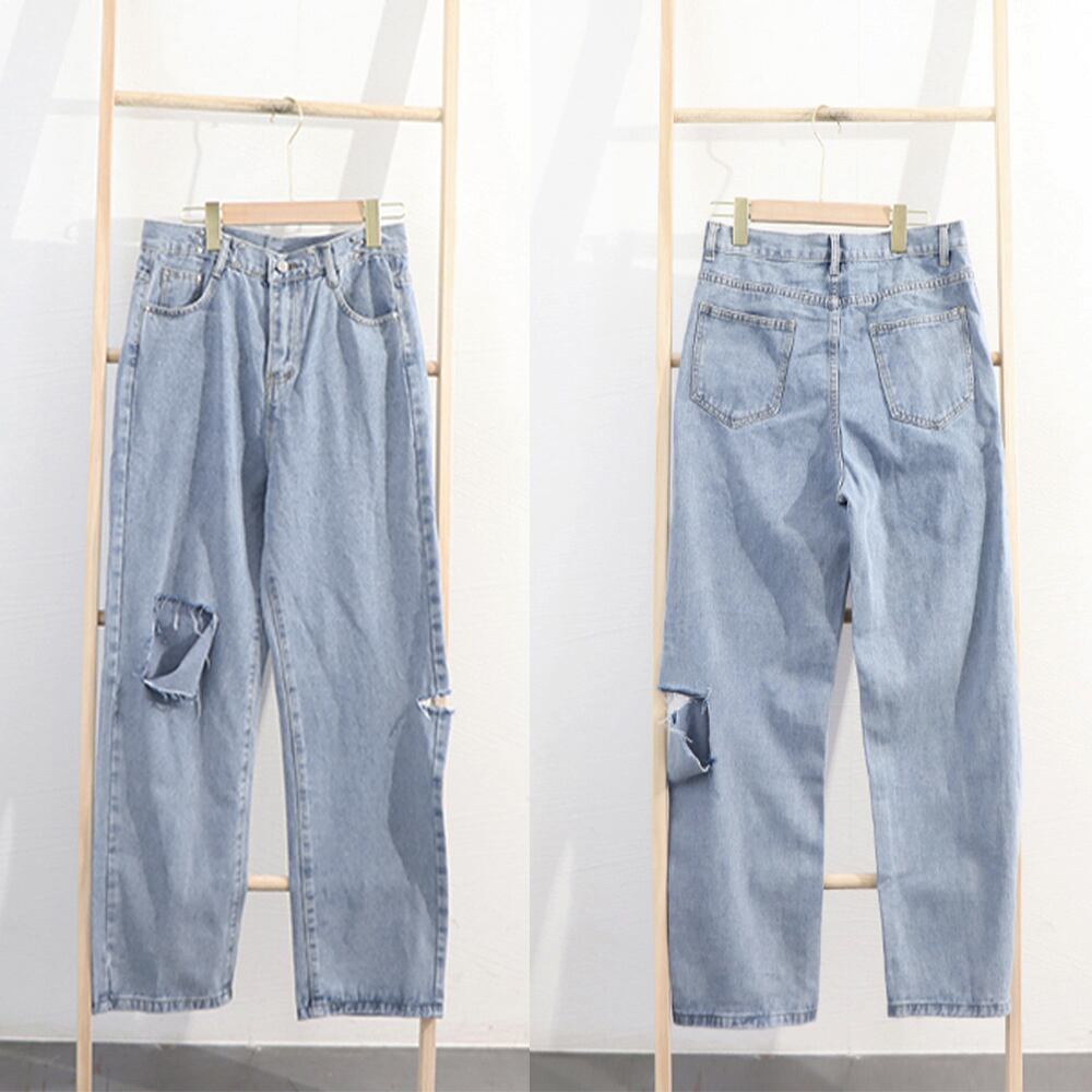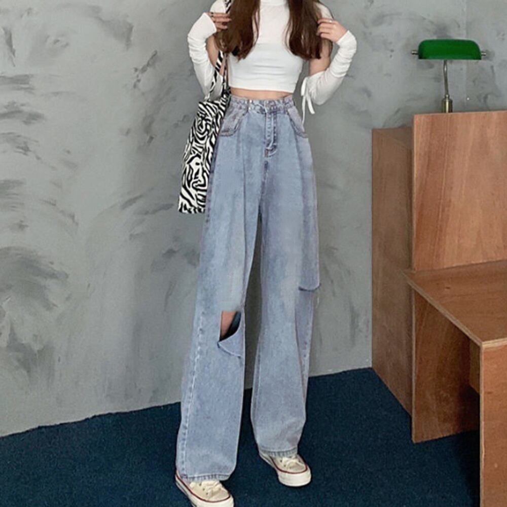 レディース ゆったり ストレートパンツ 美脚 ダメージ加工 ロングパンツ カジュアル 春秋夏 10代 20代 30代
