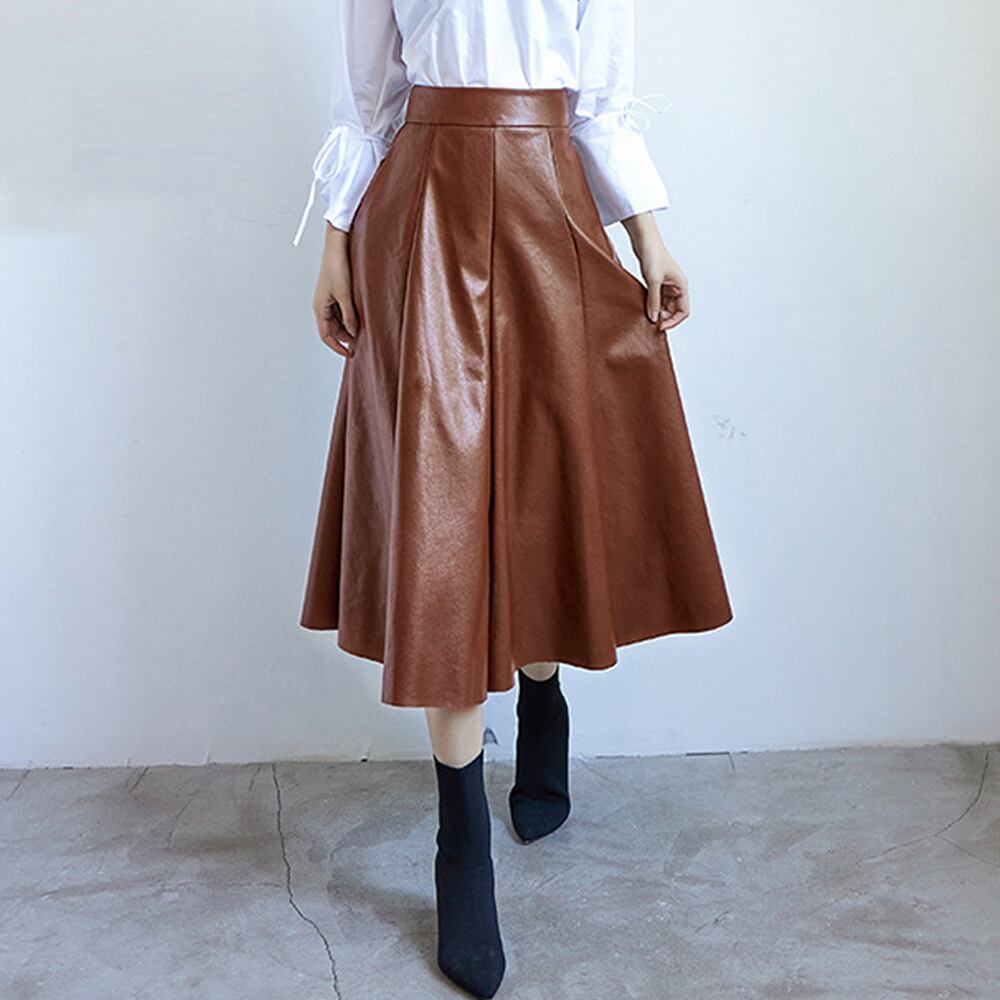 フェイクレザースカート レディース フレアスカート エコレザー ロングスカート
