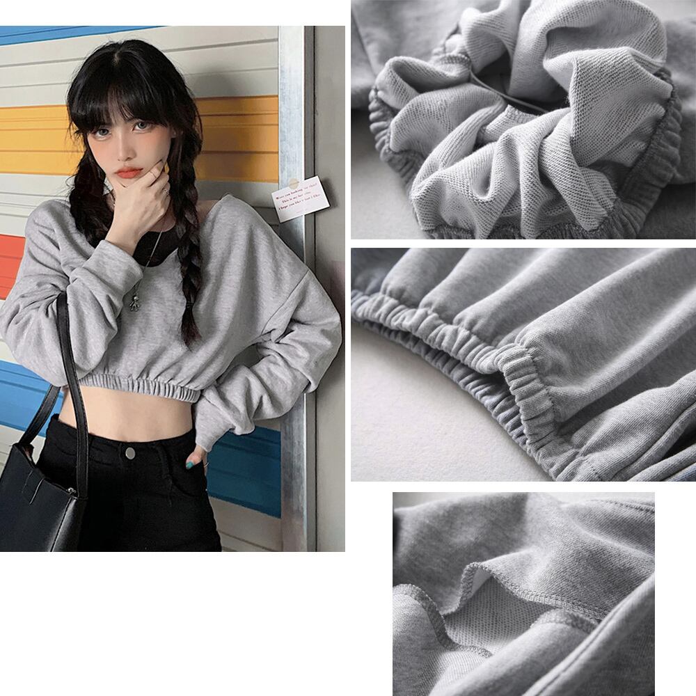 ショート丈トップス へそ出し カットソー クロップド丈 セクシー 長袖
