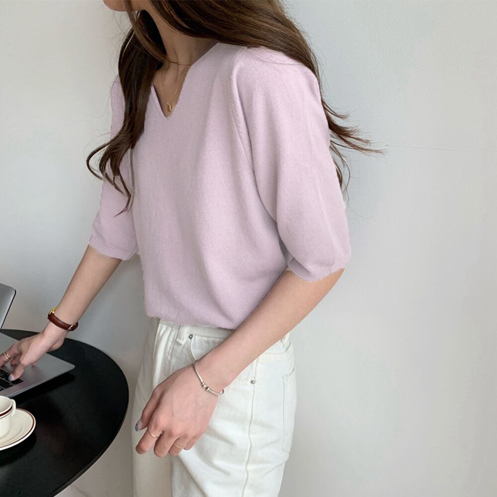 五分袖で、薄型なので、春夏秋の季節にには欠かせないニットトップス