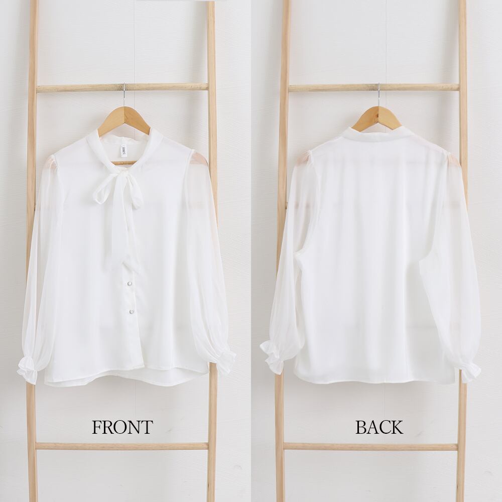 大きめのリボンが目を惹く、胸元を華やかに見せてくれる上品な透け感のあるボリュームブラウス