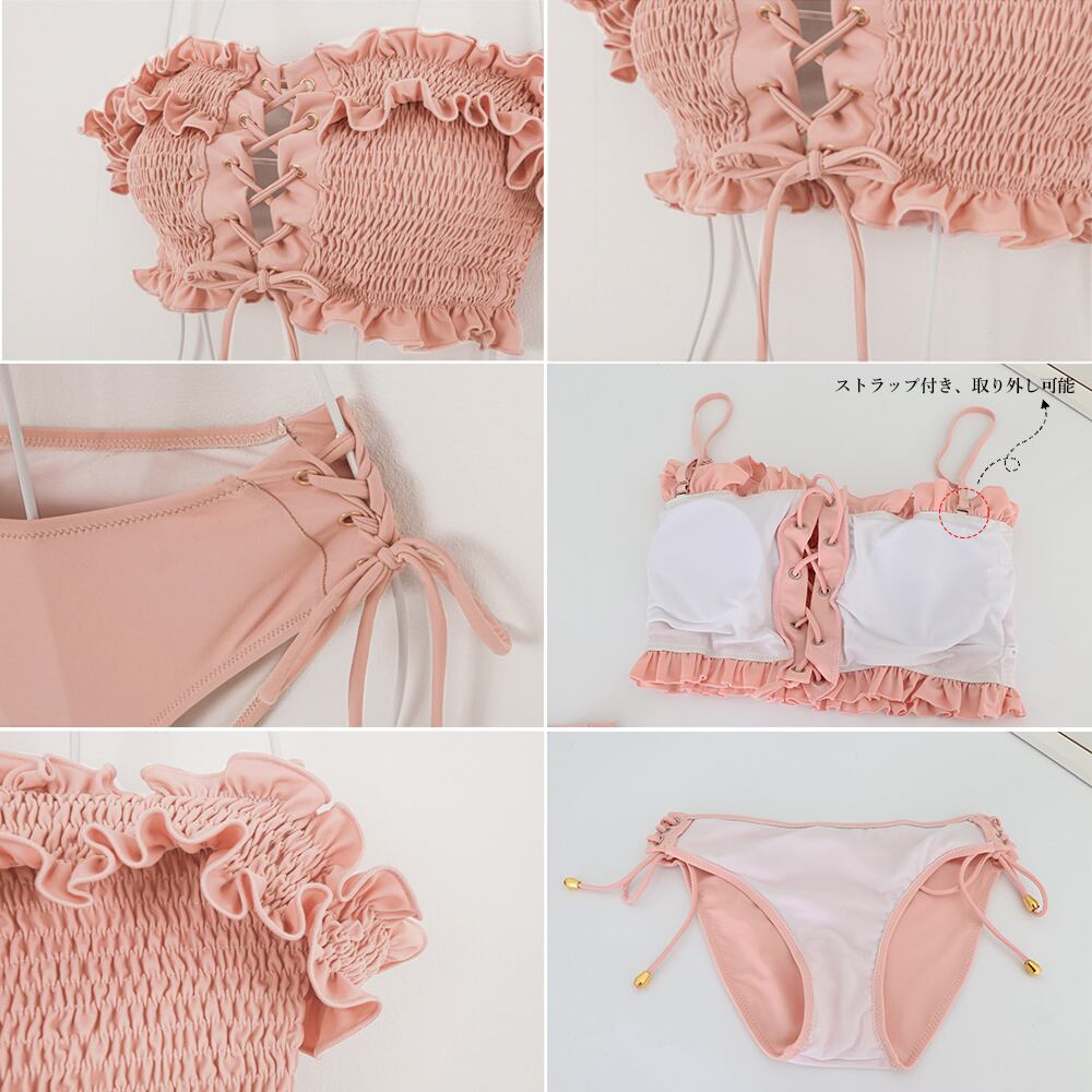レディース フリル ビキニ 編み上げ 上下セット レースアップ ビキニ セクシー セパレート水着 大人可愛い 体型カバー