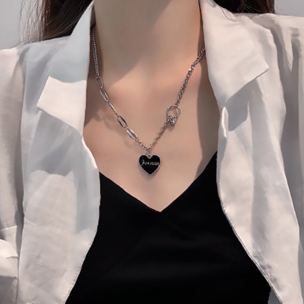 シンプル チョーカーネックレス ハートペンダント おしゃれ アシンメトリー 首飾り きれいめ オルチャン 春夏秋冬