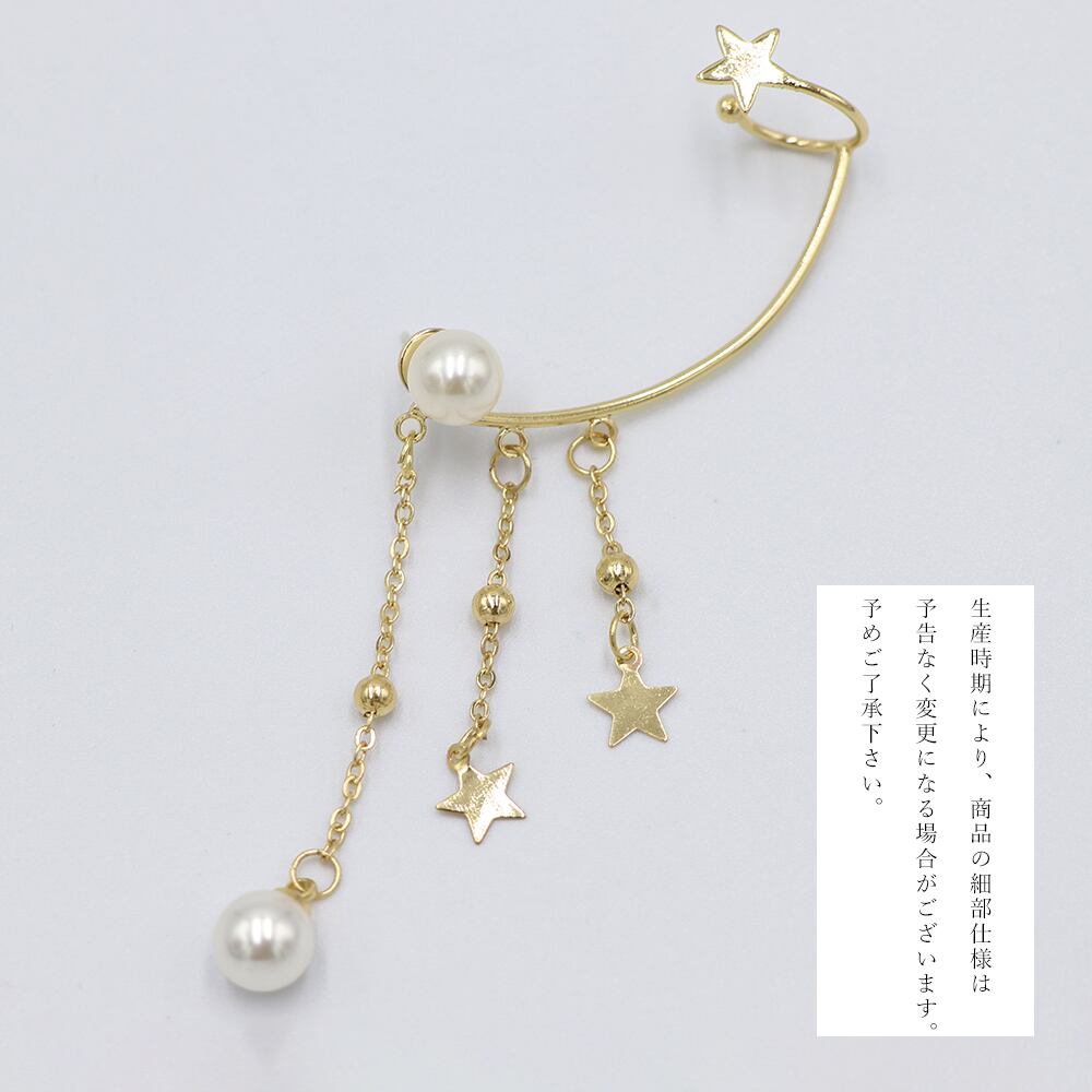 シルキーな大粒パールがきらきら輝く、星モチーフの揺れるロングイヤーカフピアスです