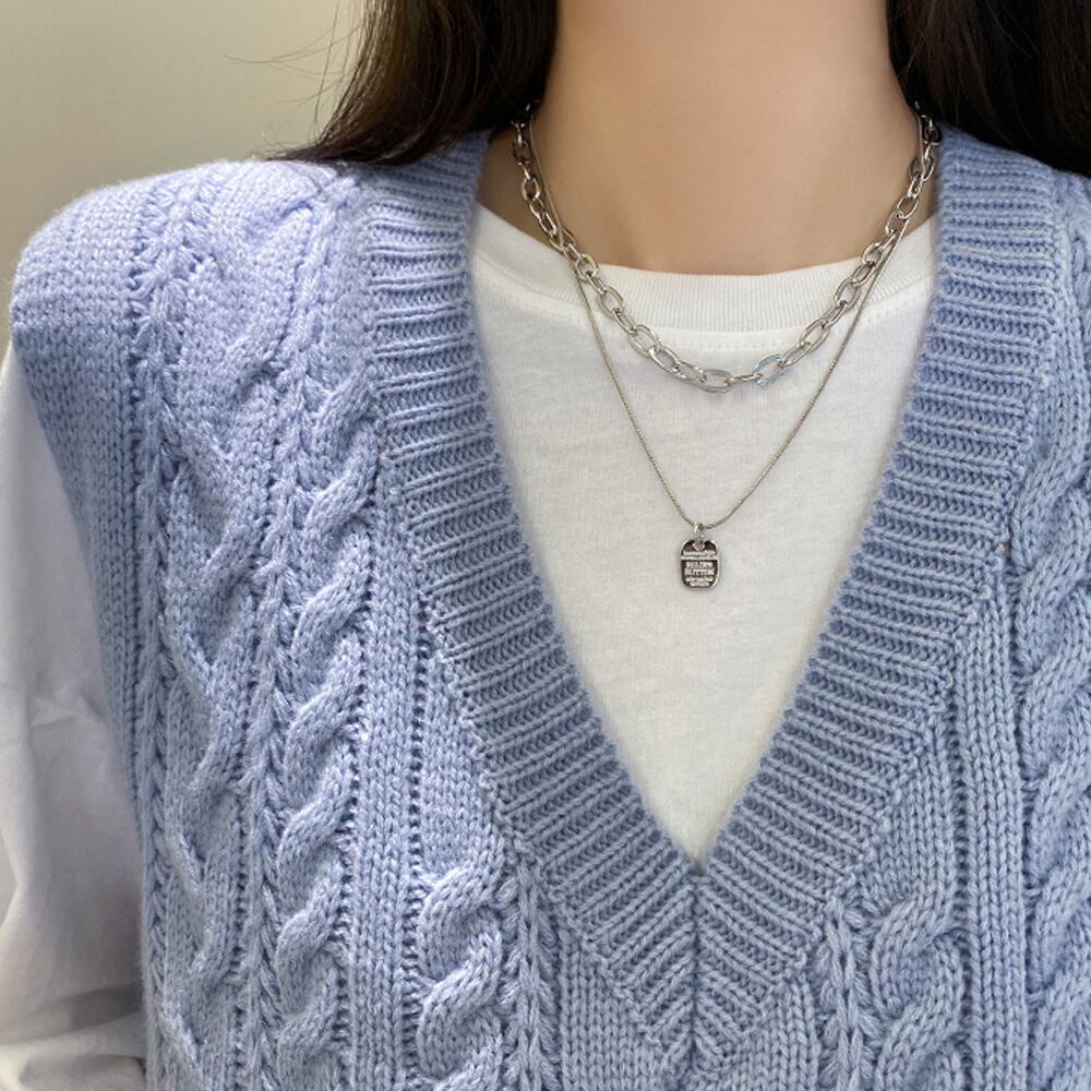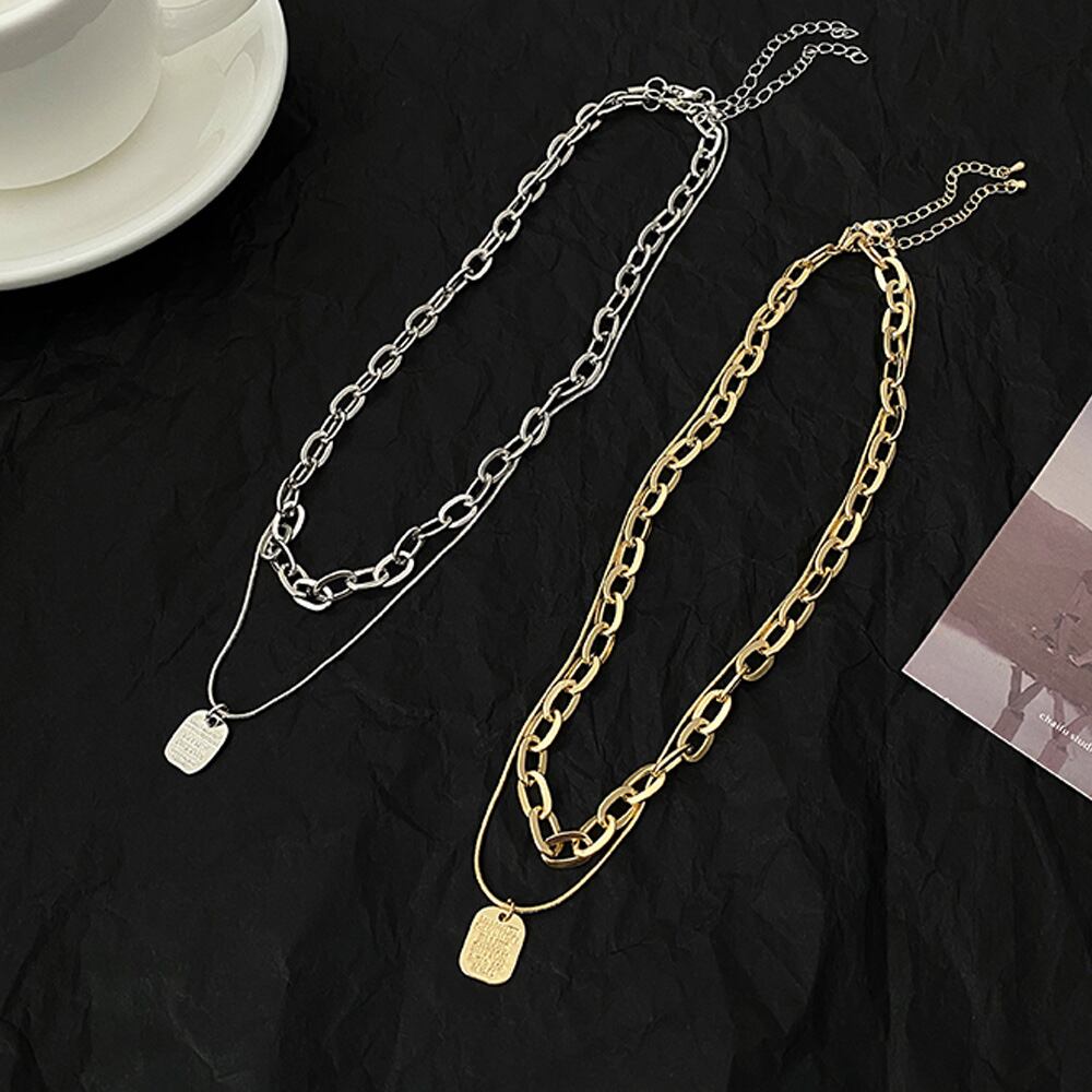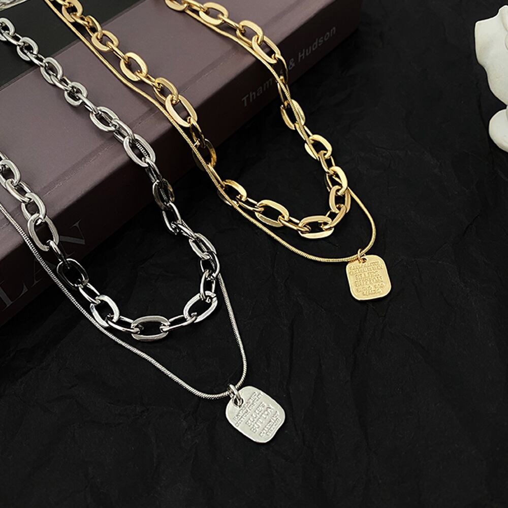チョーカーネックレス チェーン 2連ネックレス 文字モチーフ ペンダント