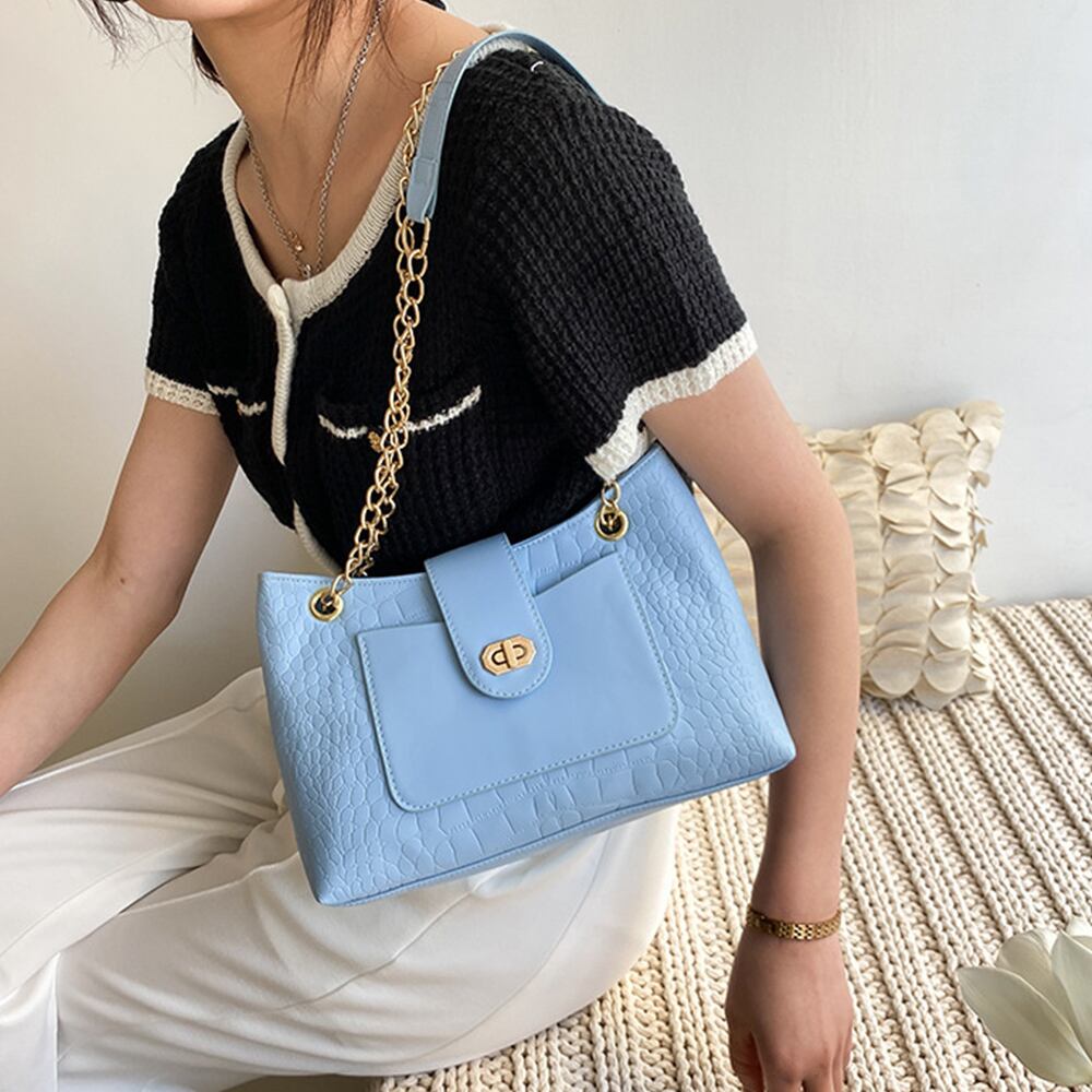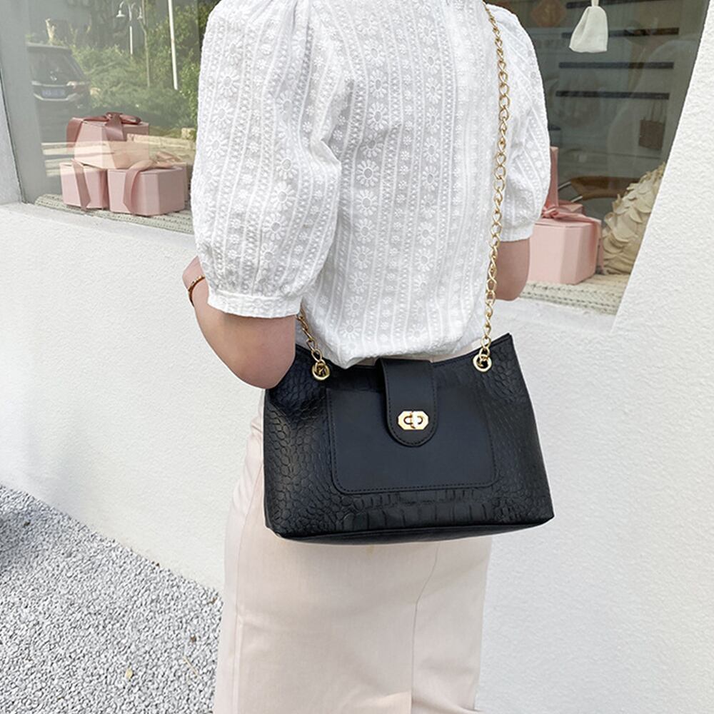 フェイクレザーで仕上げたクロコ風ショルダーバッグ