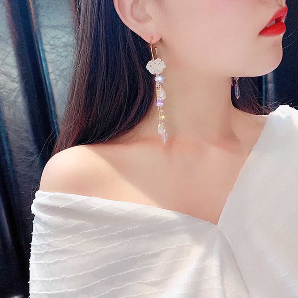 パール&ビーズ&フラワーモチーフが上品でキュートなロングピアス