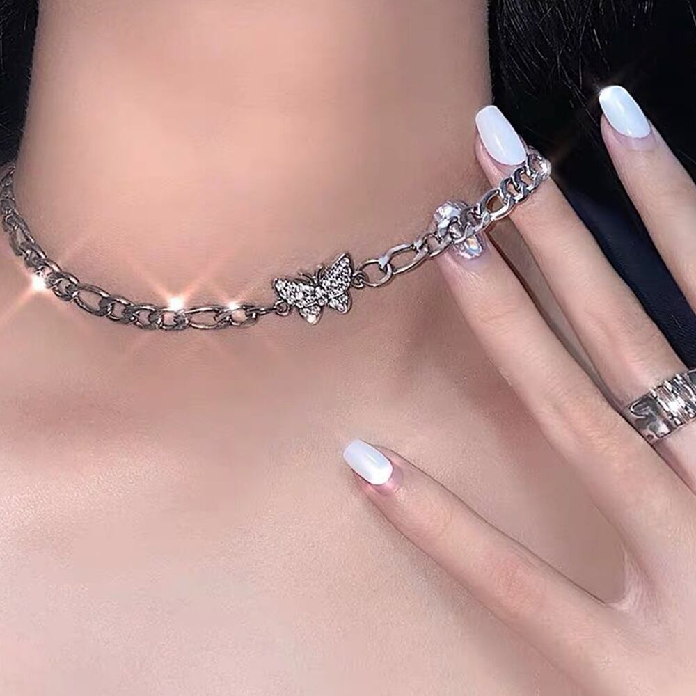 チェーン チョーカー 蝶柄 レディース 春 シルバー アクセサリー シンプル