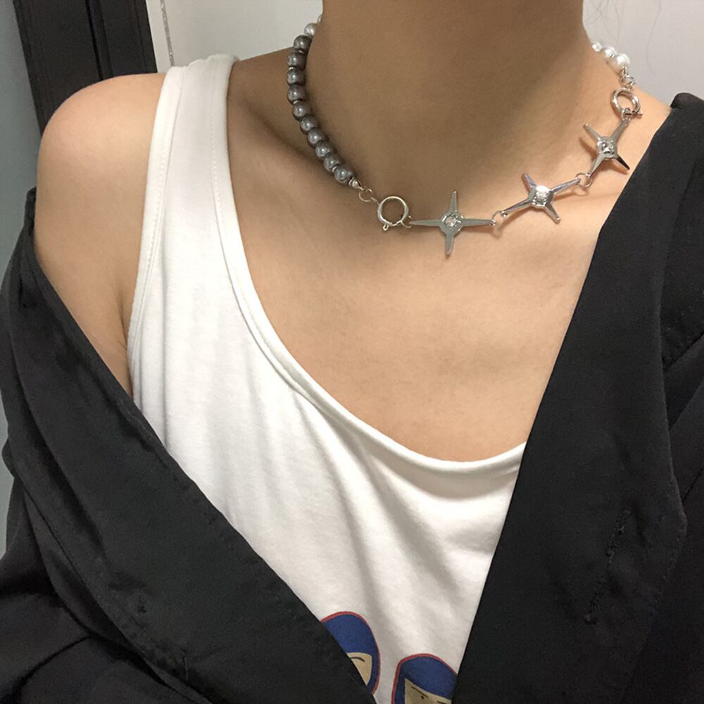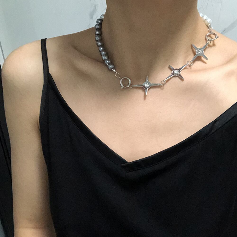 十字架 クロス 星モチーフ ネックレス 韓国 アクセサリー 異素材mix 切り替え ゴシック パンク ロック ファッション