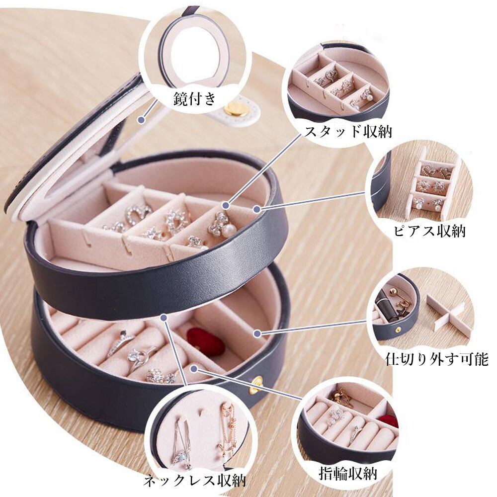 収納ケース レディース アクセサリーケース 円形 ジュエリーボックス 2段式