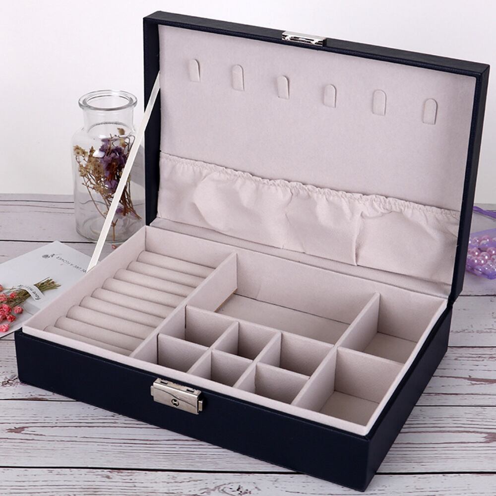 大容量 携帯 韓国 アクセサリーケース 2層 鍵付き PUレザー 収納box 指輪 ピアス イヤリング 首飾り収納ケース
