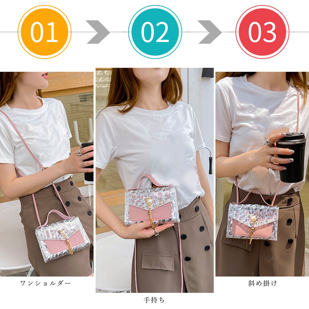 レディース 斜め掛けバッグ ホログラム 肩掛けバッグ 小さめ チェーンバッグ 可愛いスクエアバッグ 春夏 ポシェット
