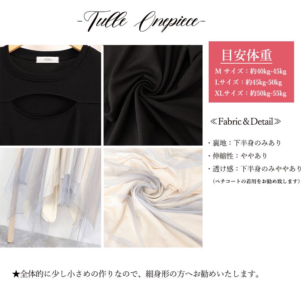 ふんわりと揺れるチュールをドッキングしたミニワンピースです