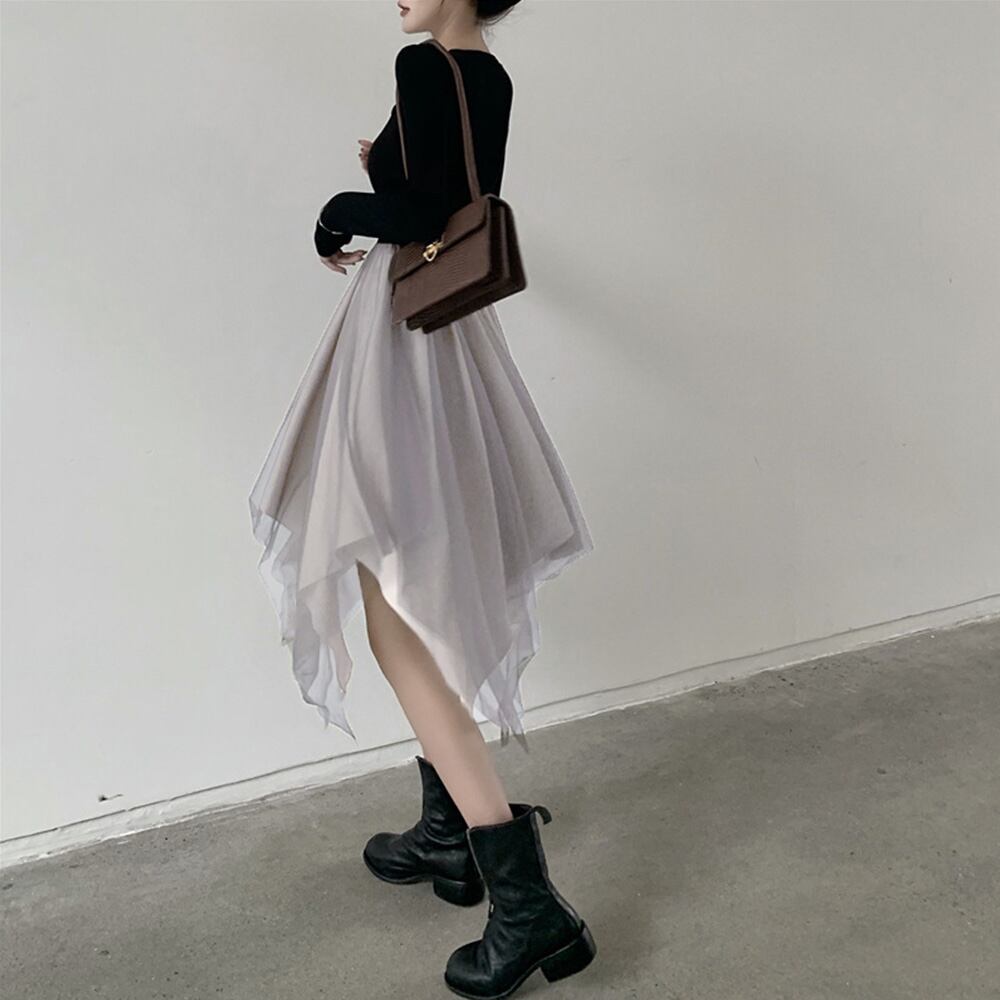 ストリート切り替え ハイウエストワンピ イレギュラーヘム
