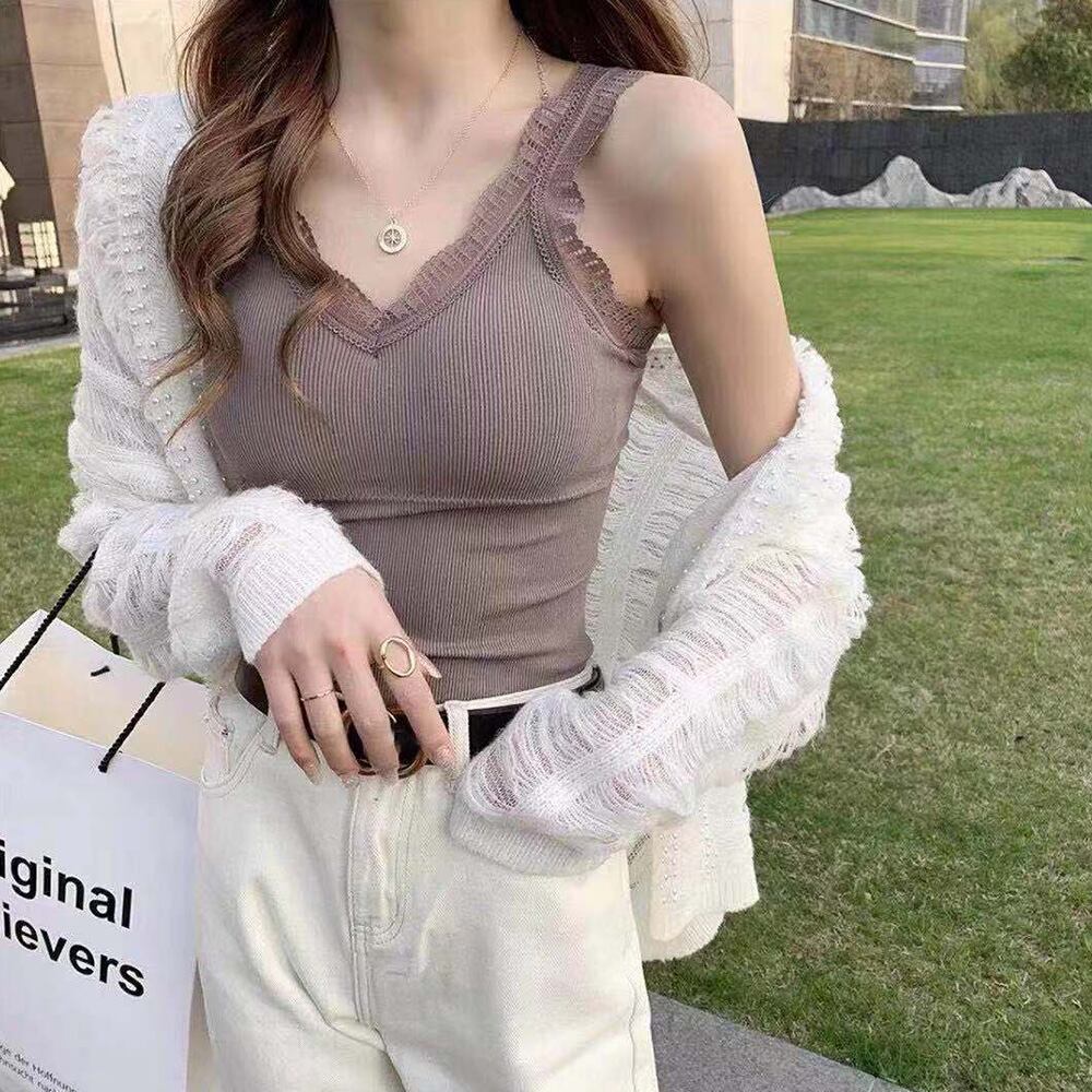 重ね着 レースキャミソール レディース Vネックセクシー下着 ノースリーブ 韓国風 アンダーウェア シンプル