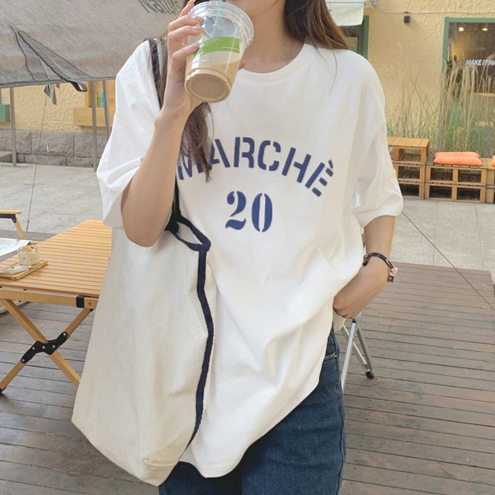 カットソー 夏 オルチャン 英字 ロング ゆったり カジュアル ストリート ルーズ 体型カバー 大人 人気 シンプル