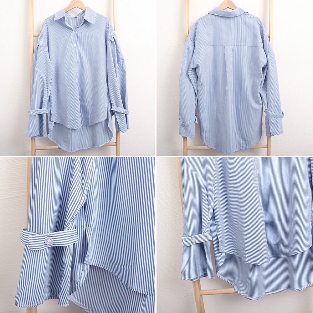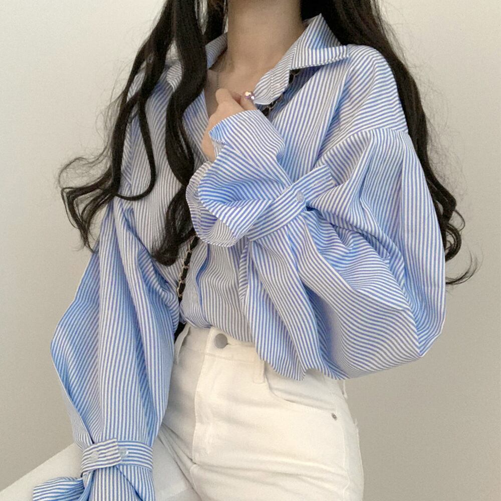 ボリューミーなキャンデースリーブが女性らしい華奢な印象に見せてくれるストライプ柄シャツ