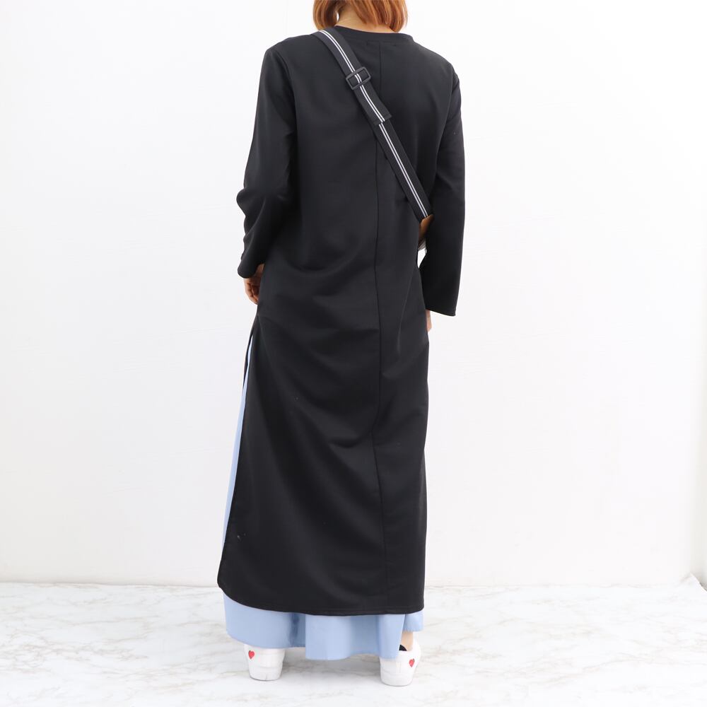 マキシワンピース クルーネック tシャツワンピース サイドスリット ウエストゴム ロングスカート 体型カバー 2点セット