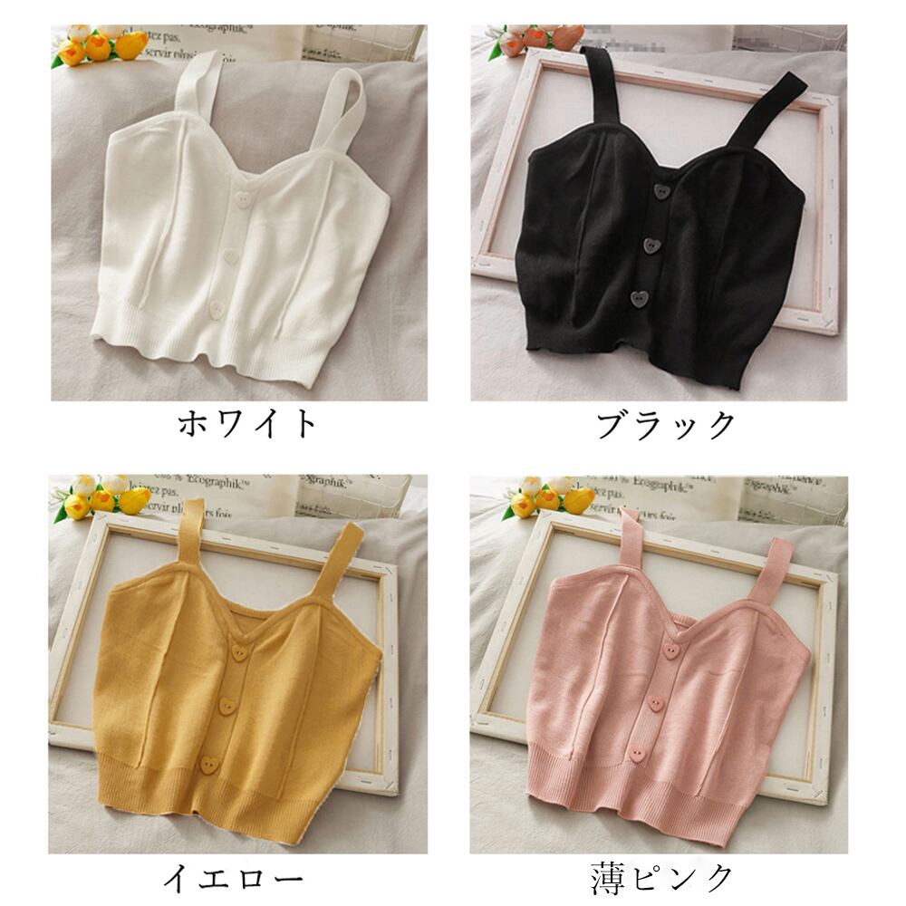 ショート丈タンクトップ おしゃれ ストレッチ サマーニット韓国ファッション ハートボタン 重ね着