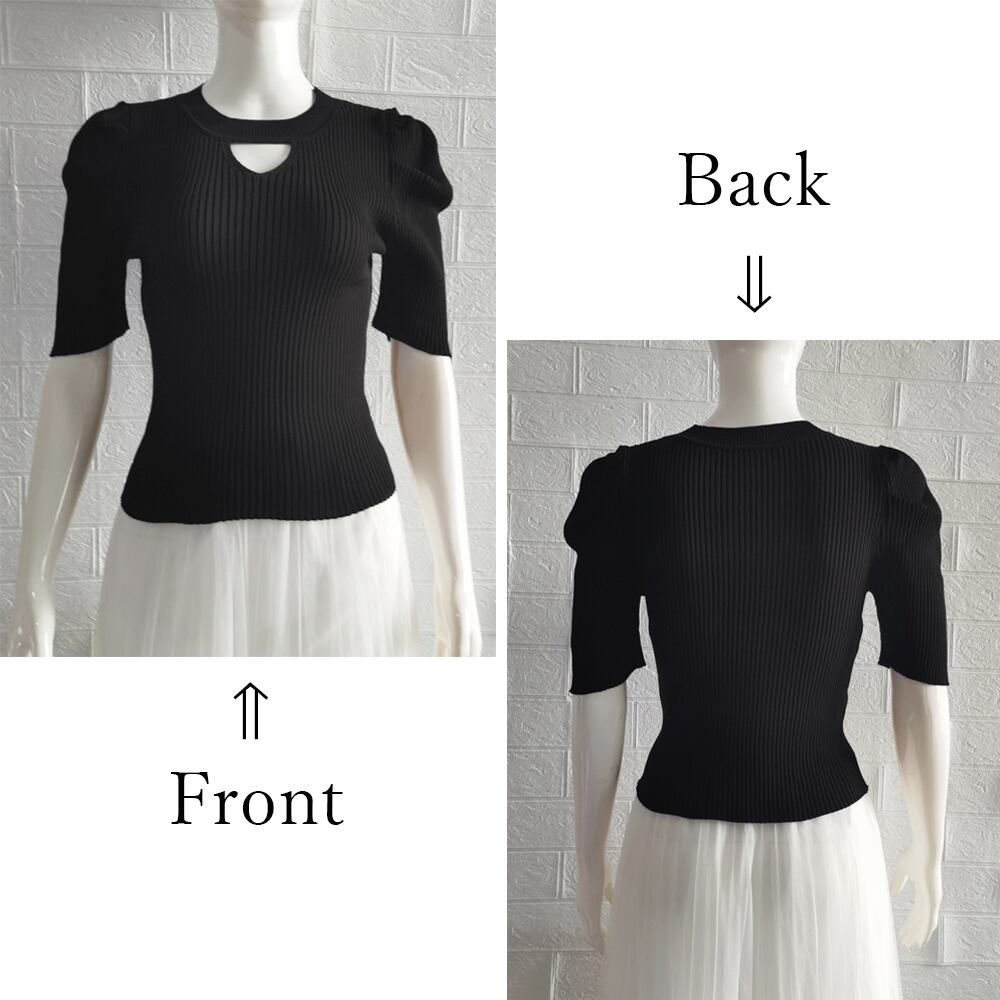レディース ハート型 穴あき ニットソー 5分袖 シンプル カットソー プルオーバー パフスリーブ tシャツ おしゃれ