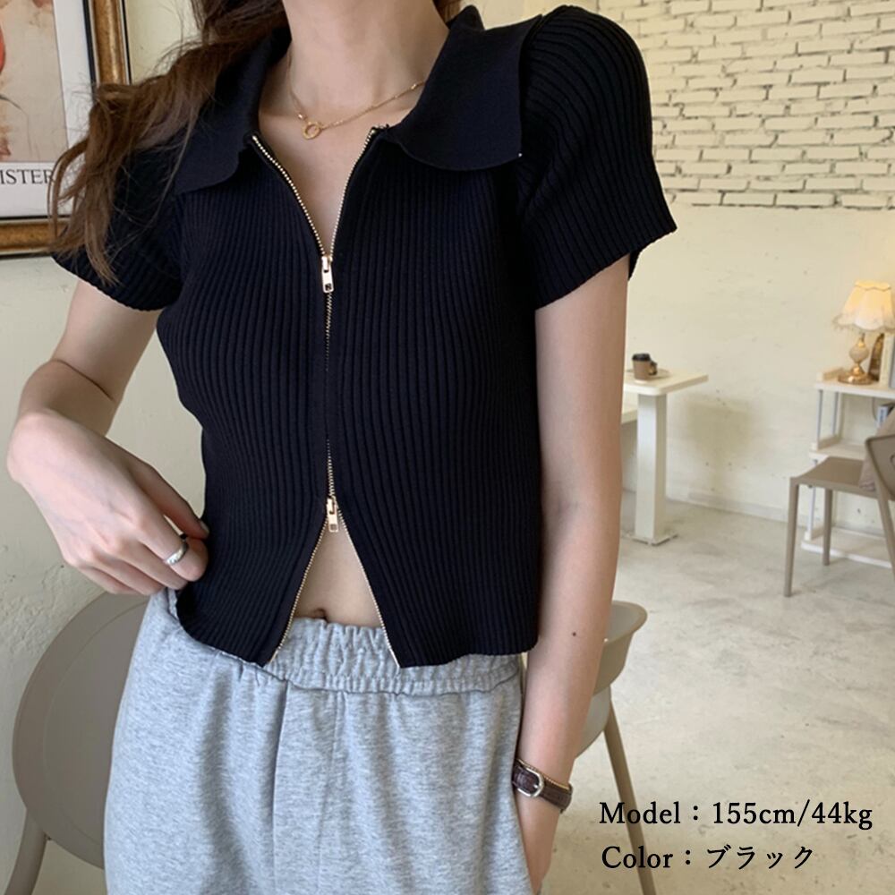 カーディガン トップス へそ出し サマーニット Vネック ファスナー ベーシック 大人コーデ 半袖 通勤 着やせ