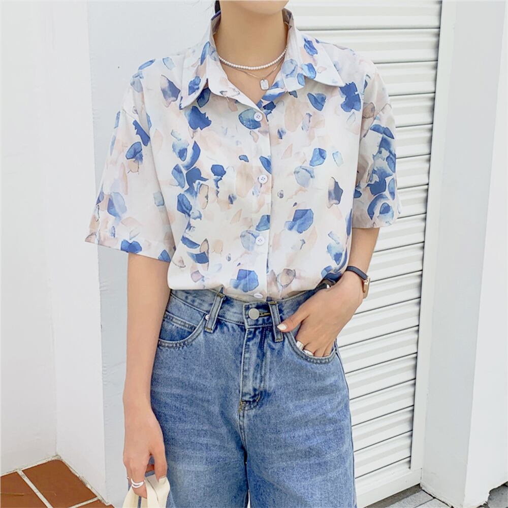 トップス 韓国ファッション アート柄シャツ シャツカーディガン レディース 薄手 サラリ Vネック