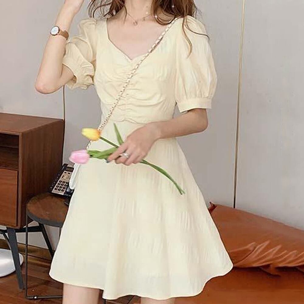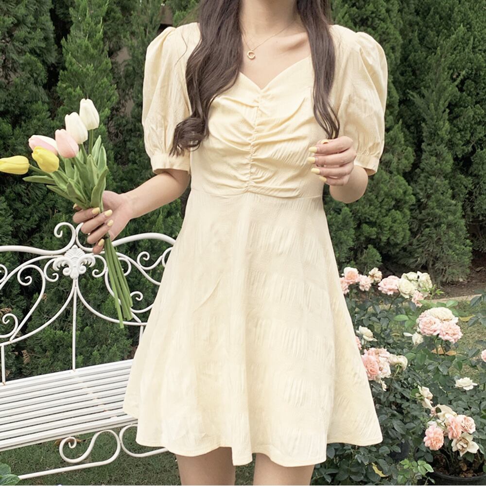 パフスリーブ 背中開け ミニワンピ 韓国ファッション セクシー 大人可愛い デコルテ