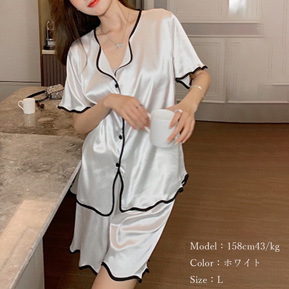 光沢感 パジャマ 無地 ナイトウェア おうち時間 寝巻き