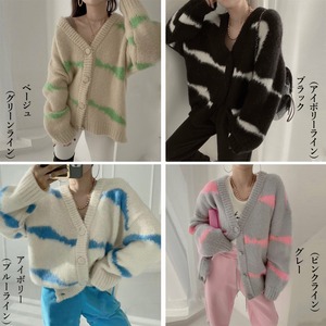 マルチボーダー ニットトップス 長袖 配色 ニットカーデ ゆったりvネック 体型カバー ニット ライトアウター カーディガン 厚手 ボーダー柄 羽織り ドロップショルダー 程よい厚みで高見えするニット素材のマルチボーダーカーディガン ブラウジングシルエットが楽しめる長めの袖丈、ゆったりとしたサイズ感なので体型カバーしつつストレスフリーの着心地を実現 普通に羽織ってはもちろん可愛いが、旬顔の着方としては断然抜き襟がおすすめ!是非とも一度お試しあれ 素材:ポリエステル75%+アクリル25% カラー:ブラック(アイボリーライン)/グレー(ピンクライン)/アイボリー(ブルーライン)/ベージュ(グリーンライン) サイズ:ワンサイズ 着丈:約63cm 肩幅:約52cm 袖丈:約43cm ゆき:約69cm 身幅:約51cm 胸囲:約102-160cm 裏地:なし 伸縮性:あり 透け感:ややあり ※ニット素材の為、伸縮具合によっては編みに隙間を感じる場合があります 生産国:中国 ※すべて平置きサイズです(採寸方法違いより、多少の誤差がございますので、ご了承ください)。 ※海外輸入品のため、商品の細部仕様は多少異なる場合がございます。予めご了承の上、ご注文お願い致します。