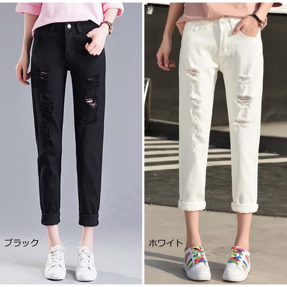 クラッシュ デニムパンツ レディース ダメージ ジーンズ ジーパン 美脚パンツ