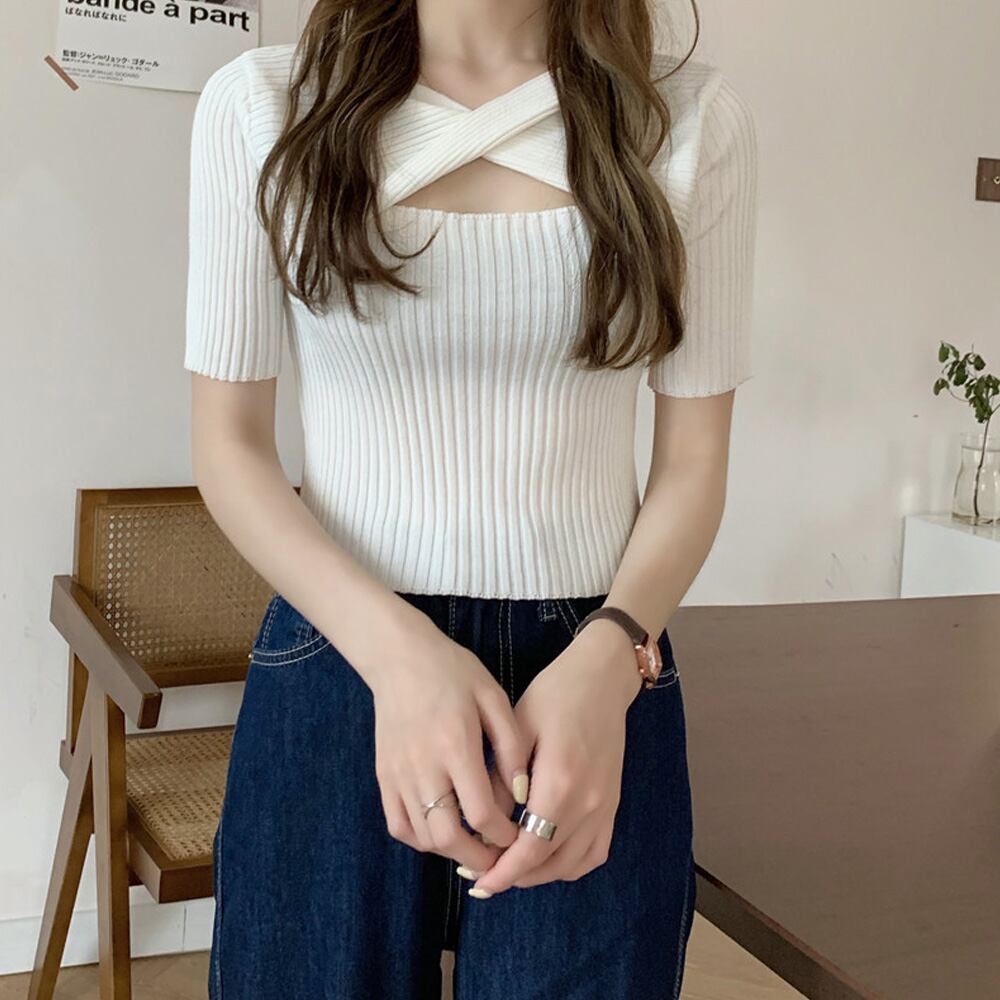ツイスト リブニットトップス 韓国風