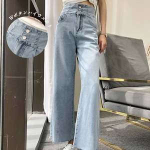 ハイウエスト デニム ワイドパンツ 切りっぱなし デニム パンツ 春夏 薄手
