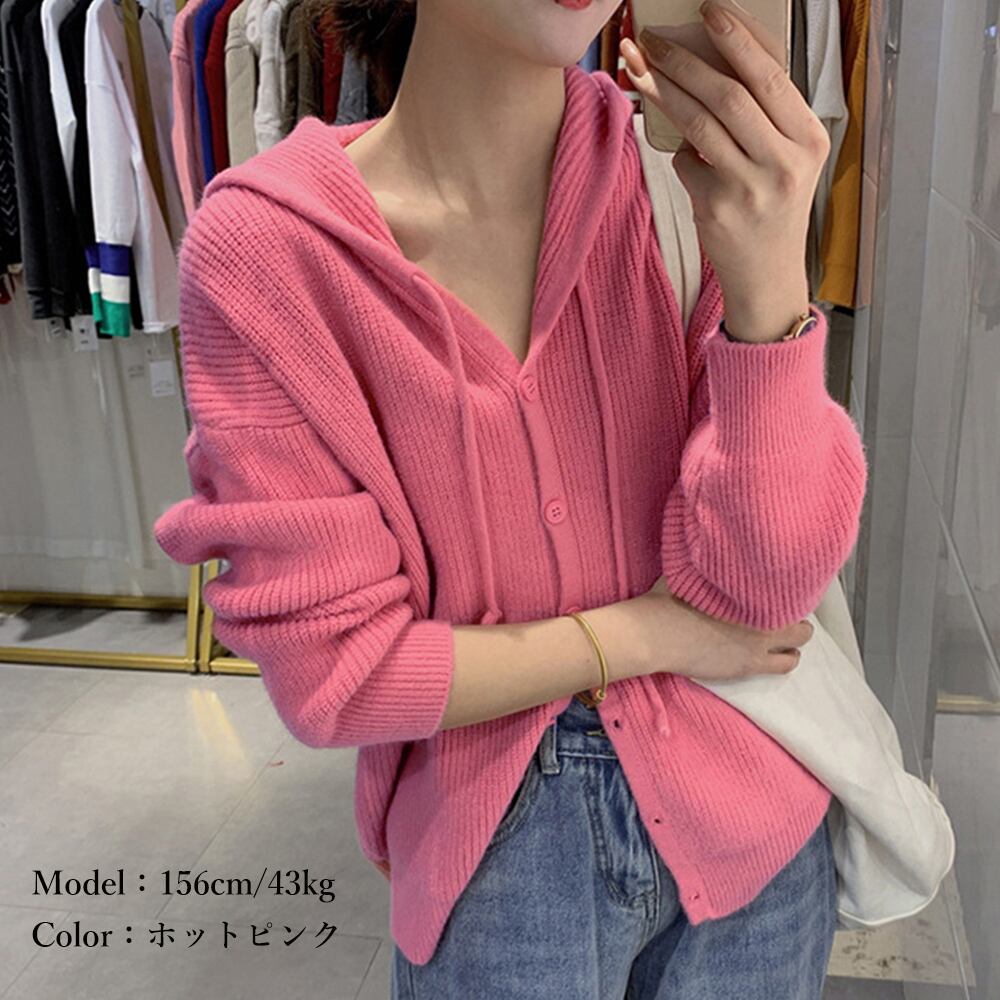 レディース リブニット トップス 長袖 フーディ vネック ドロップショルダー 羽織もの 前開き 畦編み セーター 大人 ベーシックトップス ニットフーディー ドローストリング Vネック仕様で顔周りをすっきり見せるニット生地のフード付き前開きトップス こなれ感のあるゆったりフィットシルエット、シンプルで品があってオトナ女子らしい印象をもたらす1枚 プルオーバートップスとしても羽織ものとしても使える2way仕様、ボトムス問わず甘めでも辛めでも気軽にお出掛けコーデが楽しめる 素材:アクリル75%+ポリエステル25% カラー:ブラック/アイボリー/モカ/ネイビーブルー/グリーン/オレンジ/ホットピンク サイズ:ワンサイズ 着丈:約57cm 肩幅:約52cm 袖丈:約44cm ゆき:約70cm 身幅:約50cm 胸囲:約100-130cm 裏地:なし 伸縮性:あり 透け感:なし 生産国:中国 ※すべて平置きサイズです(採寸方法違いより、多少の誤差がございますので、ご了承ください)。 ※海外輸入品のため、商品の細部仕様は多少異なる場合がございます。予めご了承の上、ご注文お願い致します。