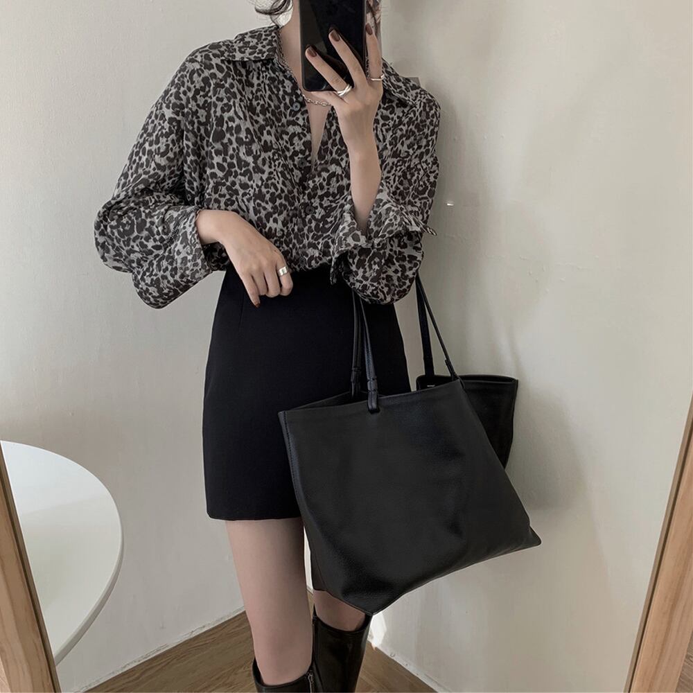 Vネック レオパード柄 シャツブラウス 韓国風 ドロップショルダー トップス 長袖 おしゃれ ゆったり 豹柄ブラウス ボリュームスリーブ 派手 シャツ 女性 アニマル柄ブラウス 華奢感全開のドロショル仕様に、トレンド感満載のぽわん袖でモダンキュートな仕上がりのレオパード柄ブラウス 少し深いVネックDesignによってデコルテが美しくセクシーに見えて、ゆったりとした身頃なので体型カバーしつつラフ感とヌケ感をアピール 前後が異なるアンバランス丈にラウンドヘム、オトナ女子らしいフェミニンな雰囲気を醸し出し、トップスINしても着ぶくれせずにスタイリッシュな1枚 素材:ポリエステル100% カラー:ブラック/ブラウン サイズ:ワンサイズ(XL) 着丈:前丈約66cm/後丈約76cm 肩幅:約52cm 袖丈:約50cm ゆき:約76cm 身幅:約60cm 胸囲:約120cm 裏地:なし 伸縮性:なし 透け感:なし 生産国:中国 ※すべて平置きサイズです(採寸方法違いより、多少の誤差がございますので、ご了承ください)。 ※海外輸入品のため、商品の細部仕様は多少異なる場合がございます。予めご了承の上、ご注文お願い致します。