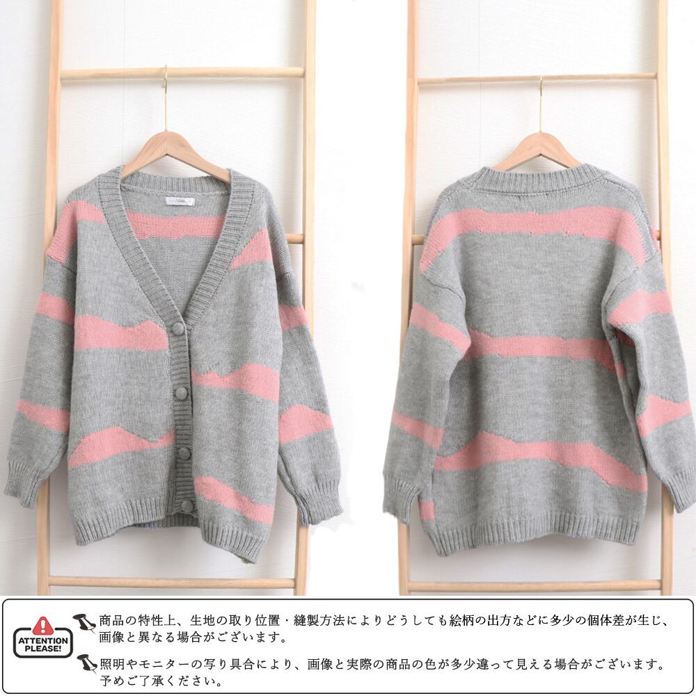カーディガン 厚手 ボーダー柄 羽織り ドロップショルダー