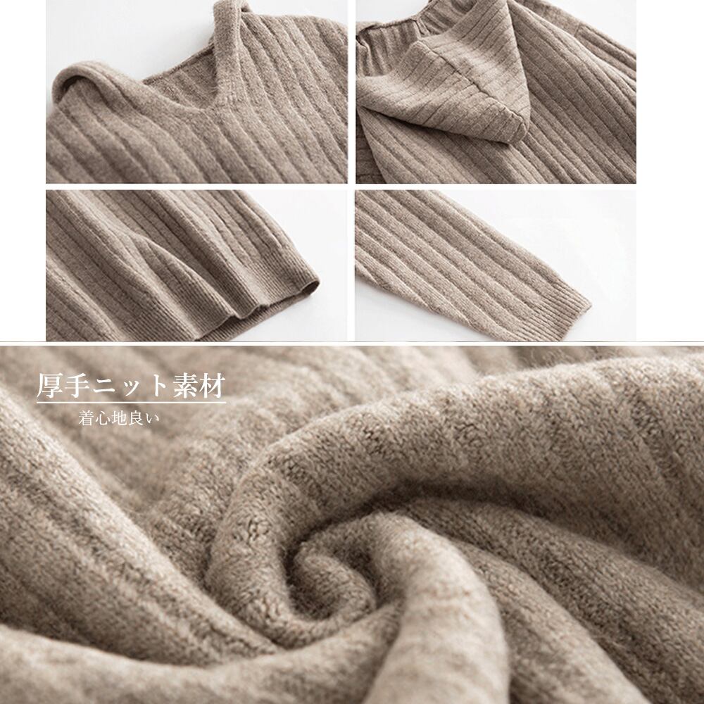 フード付き ニットワンピース レディース ゆったり ロングワンピース 長袖
