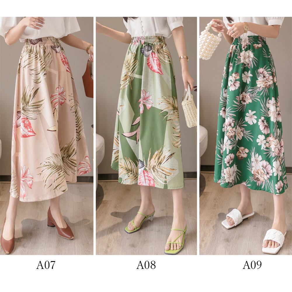 さらっとした素材で暑い季節に活躍するプリント花柄ロングスカート
