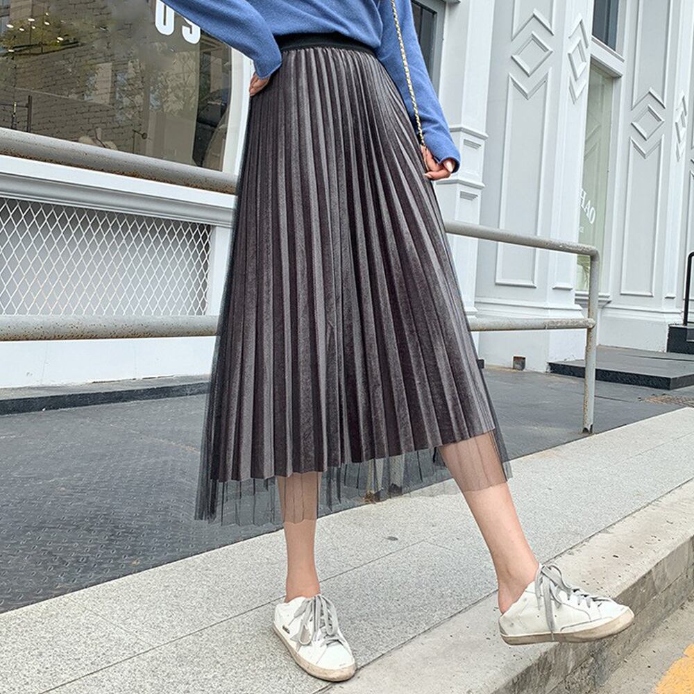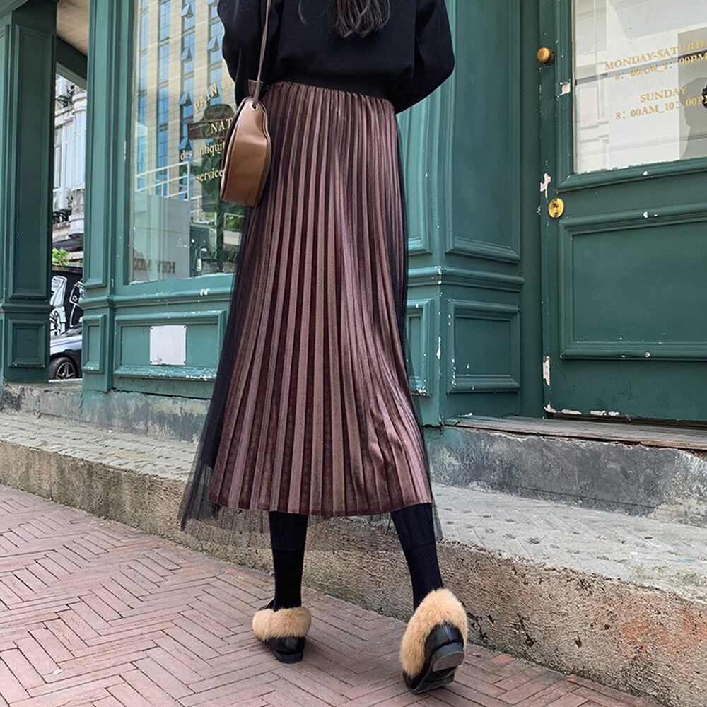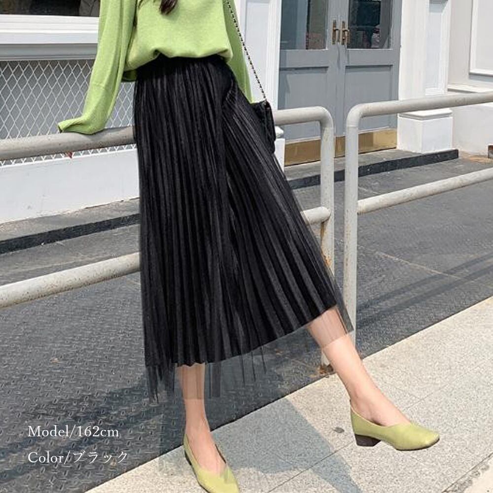 プリーツスカート レディース ベロア チュールスカート ロングスカート