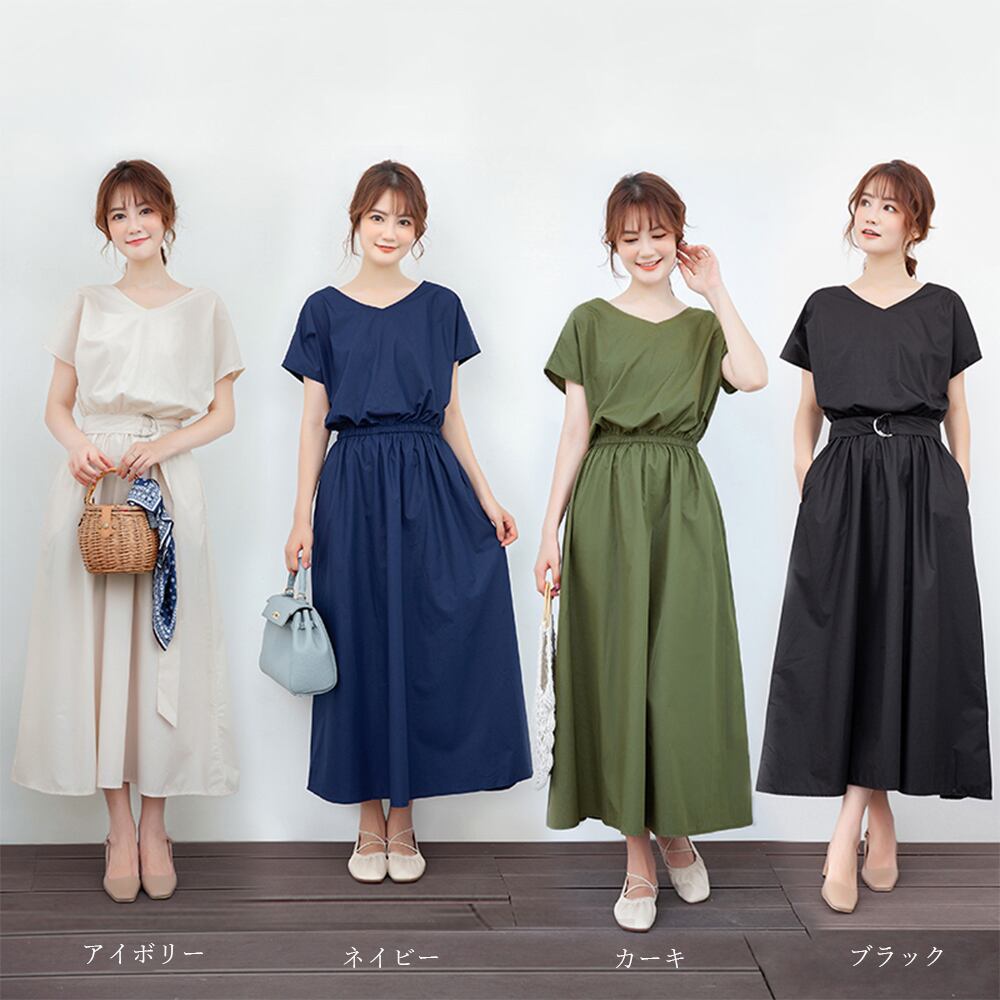 ウエストゴム仕様でウエストのメリハリを出す、大人シンプルなベルト付きワンピースです